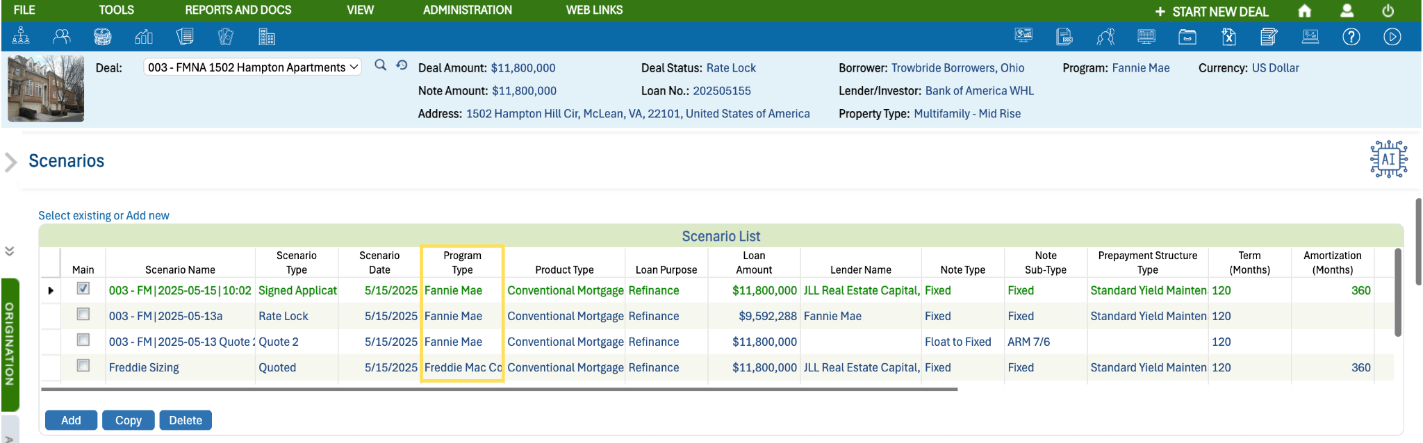 - Create sizing records or quotes for Fannie Mae, Freddie Mac, any GSE, or any other program type all on one screen